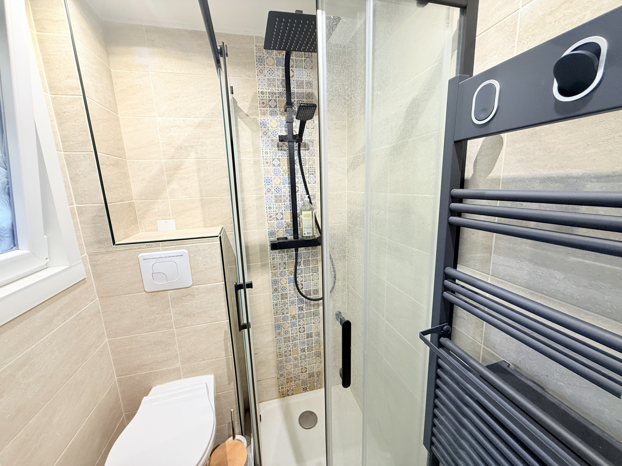 À l’étage, la maison dispose de trois chambres, d’une seconde salle d’eau, et d’un WC indépendant.