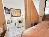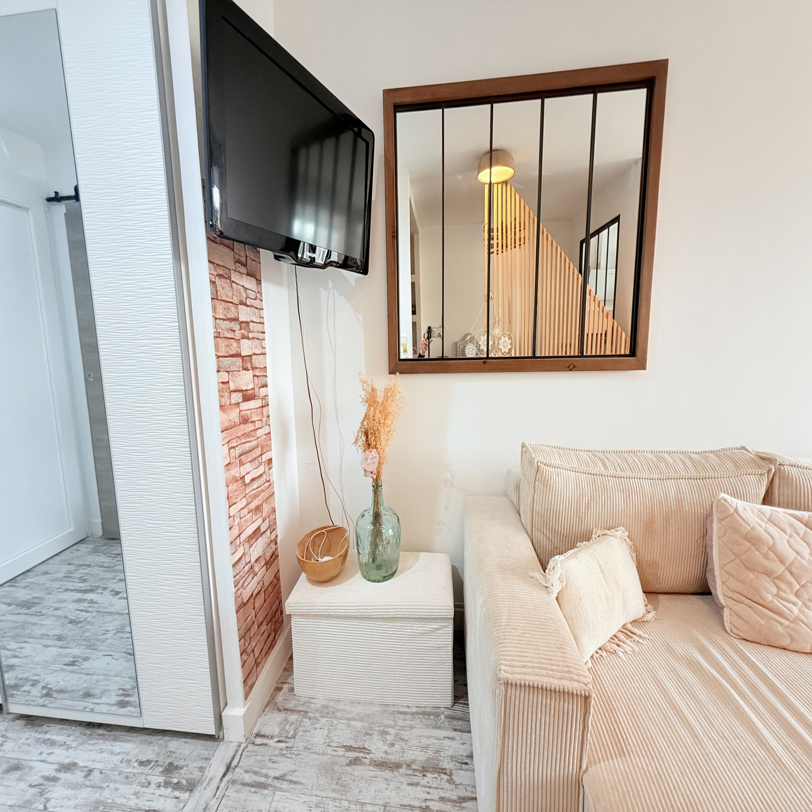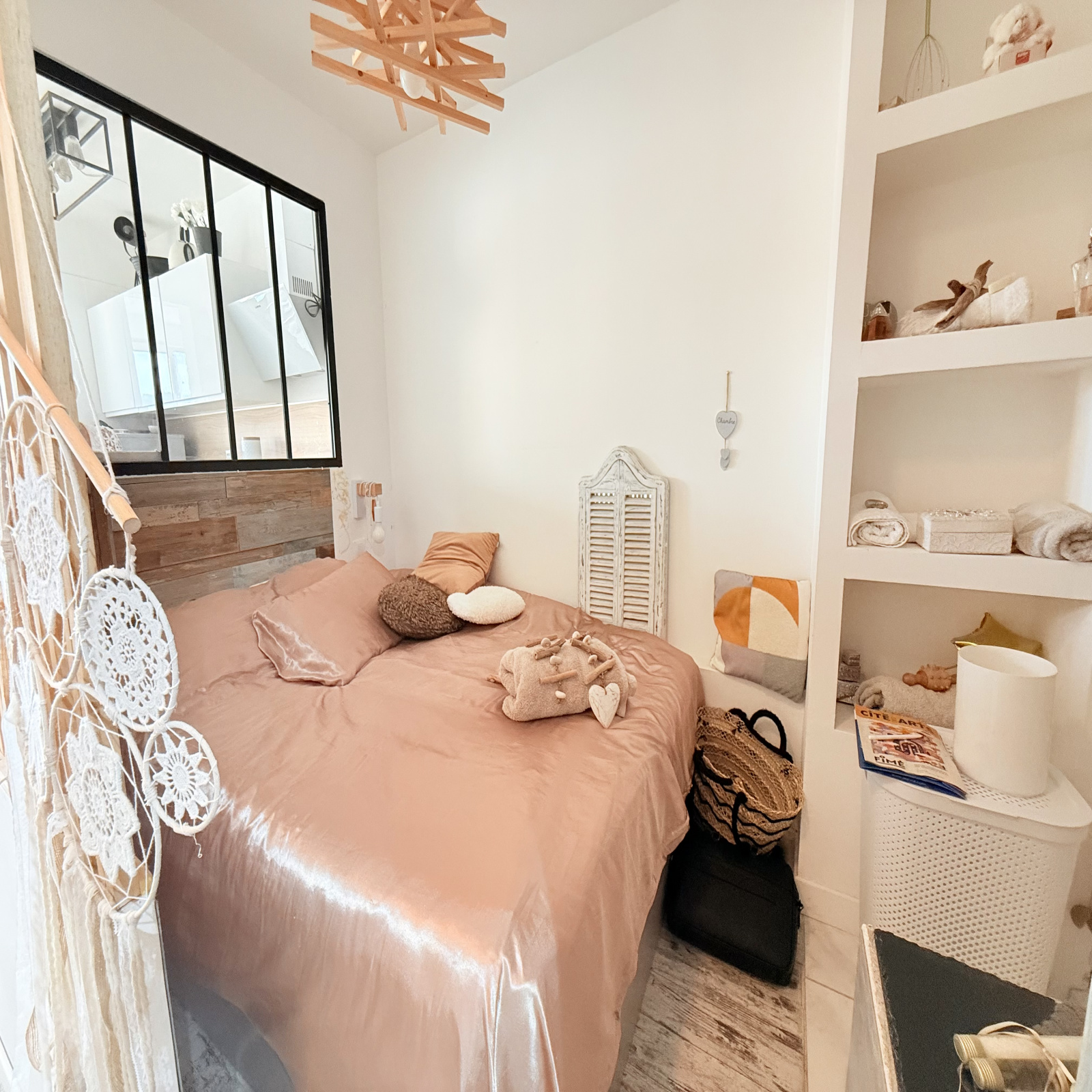 Le coin nuit, séparé du séjour, propose un espace intime et bien pensé.