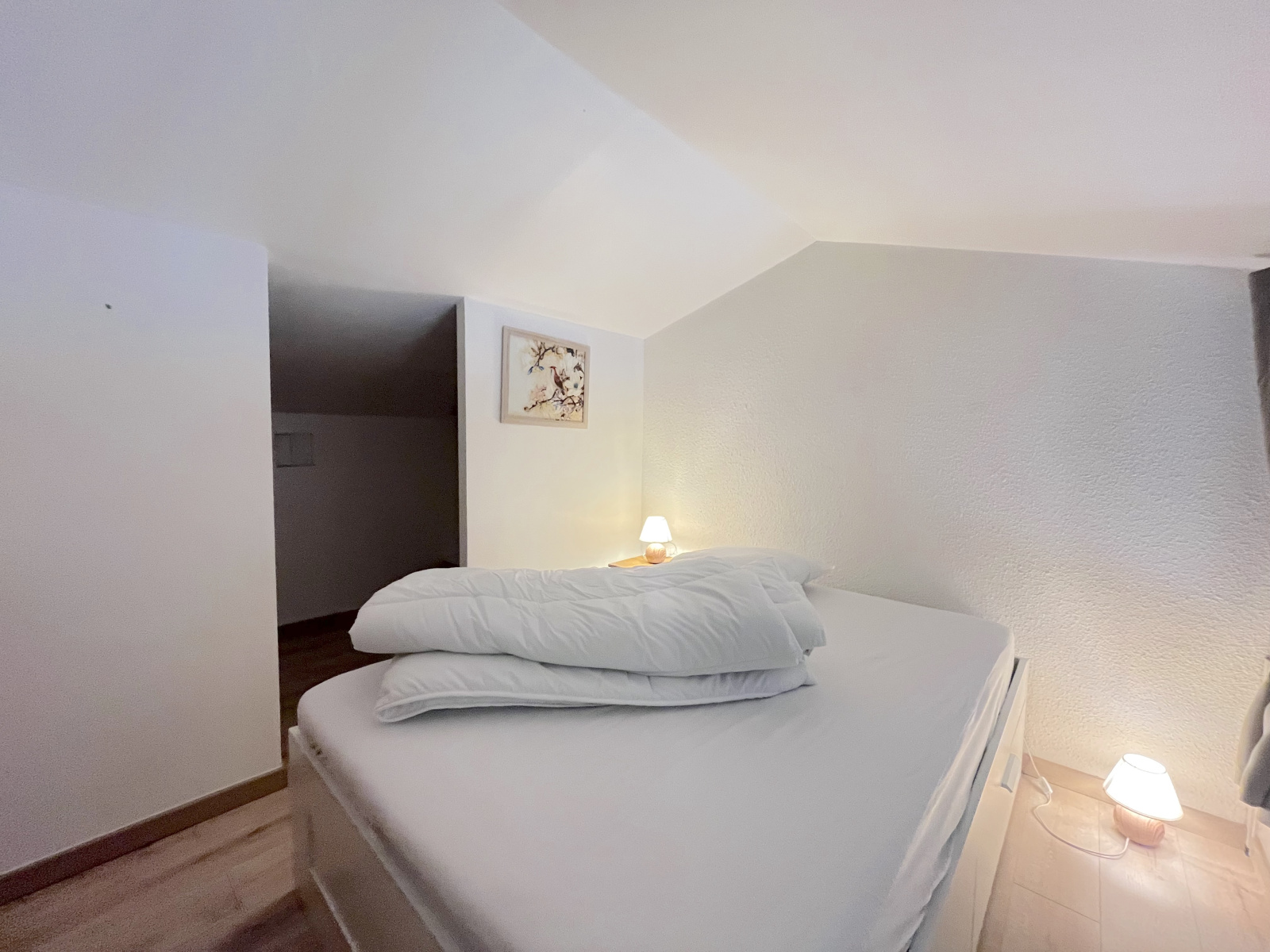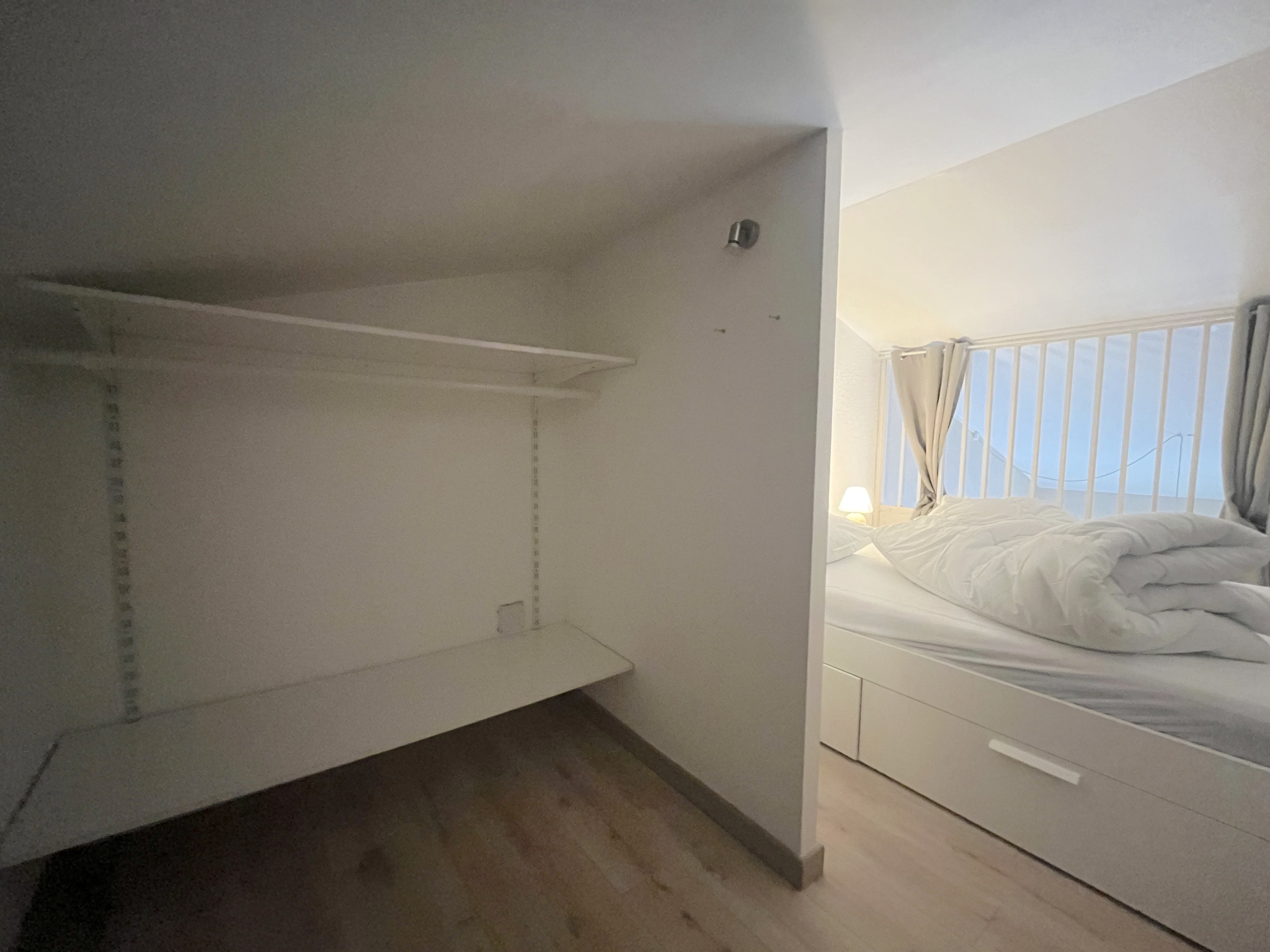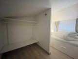 À l’étage, une chambre mansardée complétée par un espace dressing.