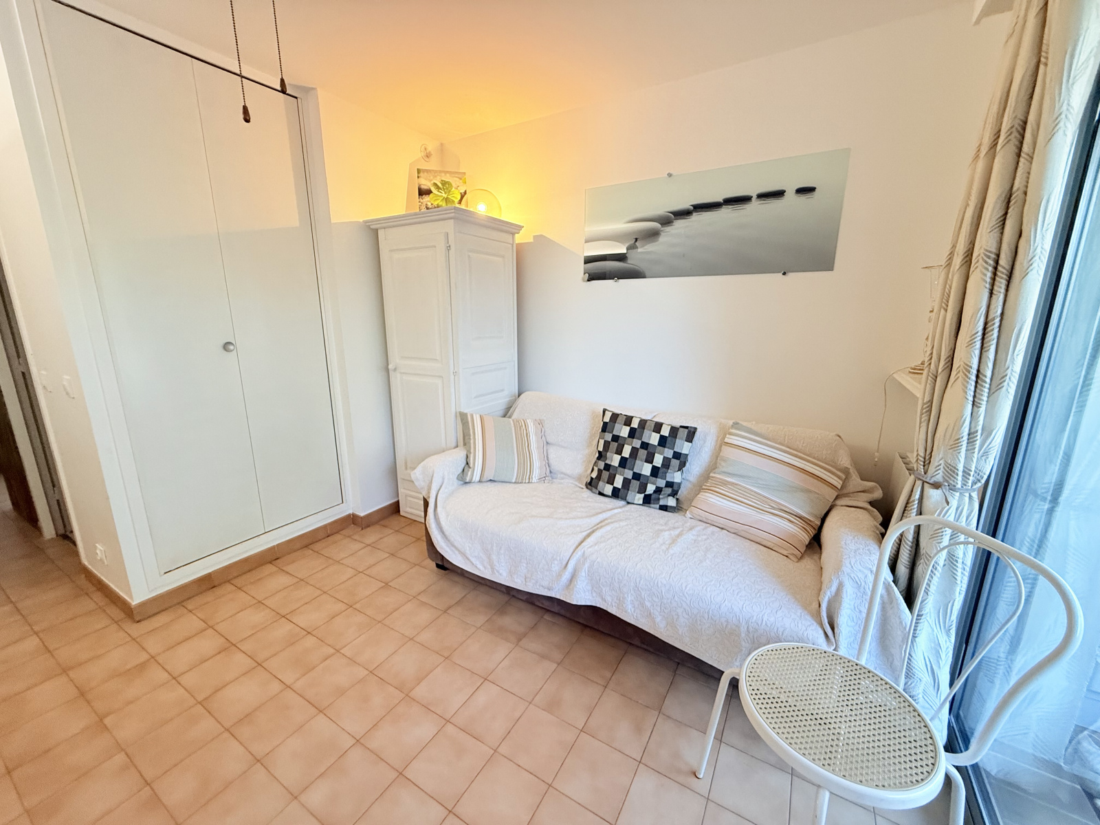 Le logement se compose d’une entrée desservant un espace nuit séparé, permettant de préserver un véritable coin repos. La pièce de vie claire et bien agencée, s’ouvre sur une loggia fermée idéale pour profiter d’un espace supplémentaire en toute saison. La cuisine est aménagée et équipée, offrant tout le nécessaire au quotidien.