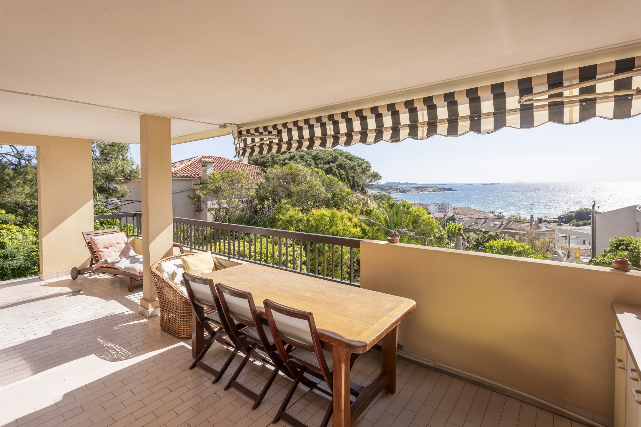 À découvrir : un superbe appartement de type 3, offrant un cadre exceptionnel avec vue panoramique sur la mer, terrasse ensoleillée et vaste espace extérieur.