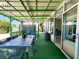 Côté extérieur, vous profiterez d’une grande terrasse couverte de 25 m² exposée plein Sud, d’une seconde terrasse de 20 m² côté cuisine, ainsi que d’un jardin d'environ 100 m² côté Nord. Un cabanon de 20 m² sur dalle béton et deux places de stationnement complètent ce bien.
