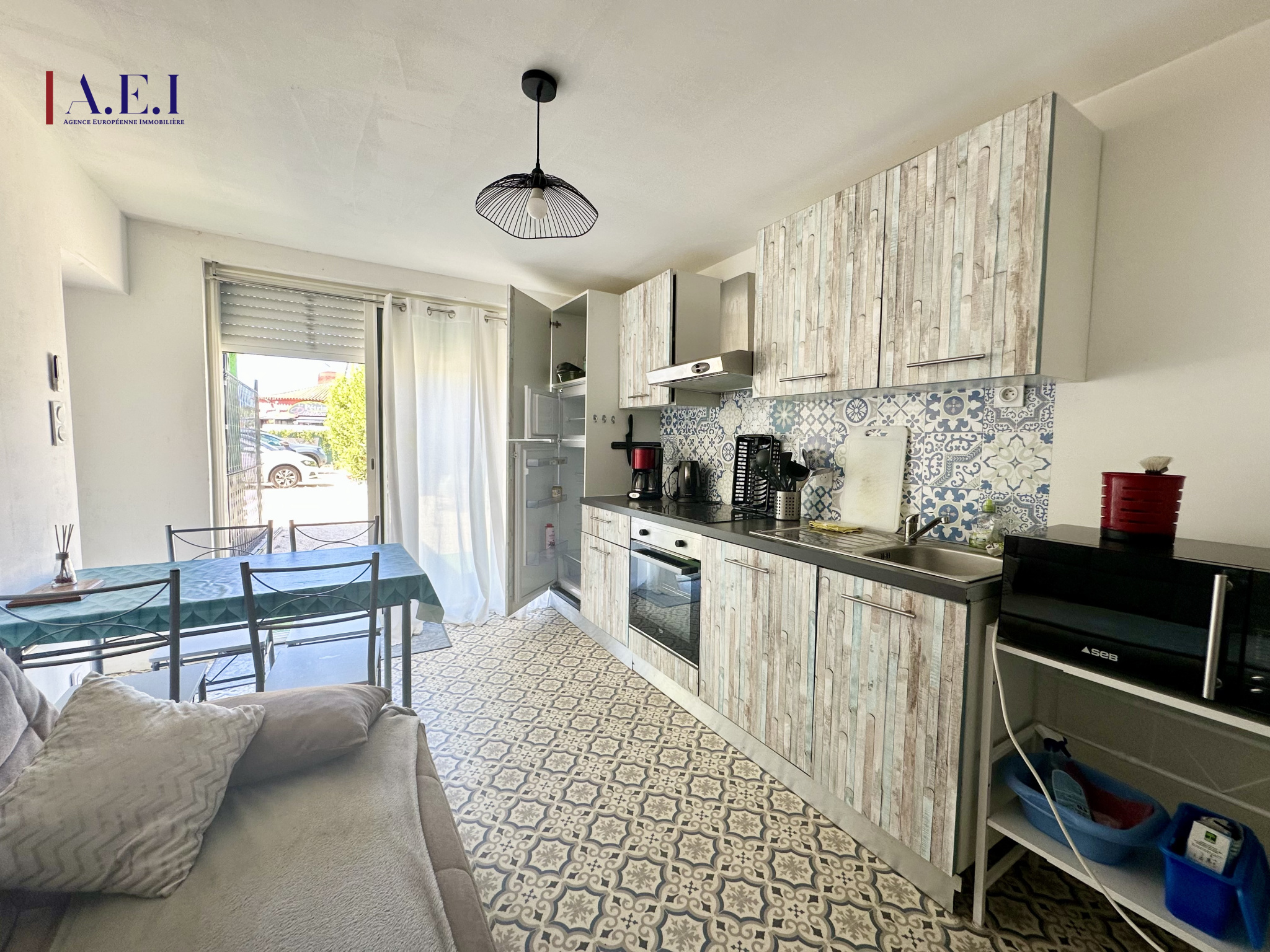 Situé en rez-de-jardin d’une copropriété de deux lots (bas de villa), il se compose d’une agréable salle à manger avec cuisine entièrement équipée, d’un salon lumineux (pouvant être transformé en chambre) ouvert sur une véranda, d’une chambre avec dressing et d’une salle d’eau avec WC.