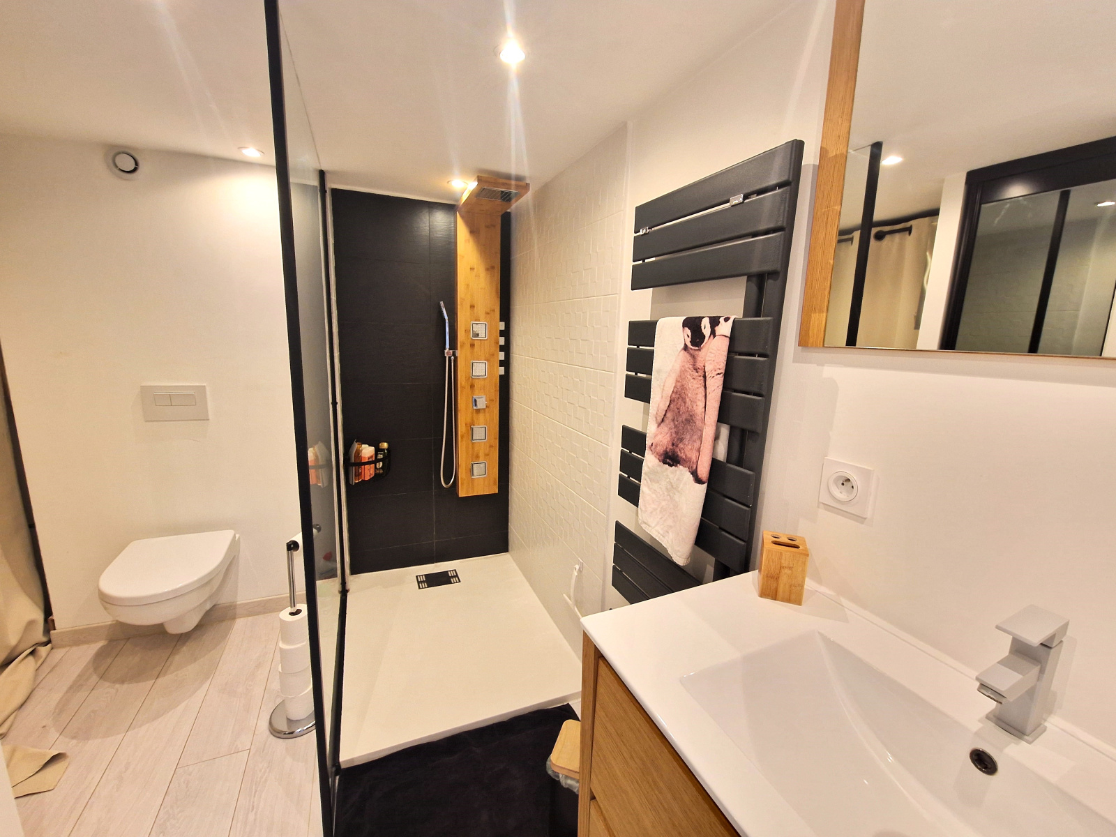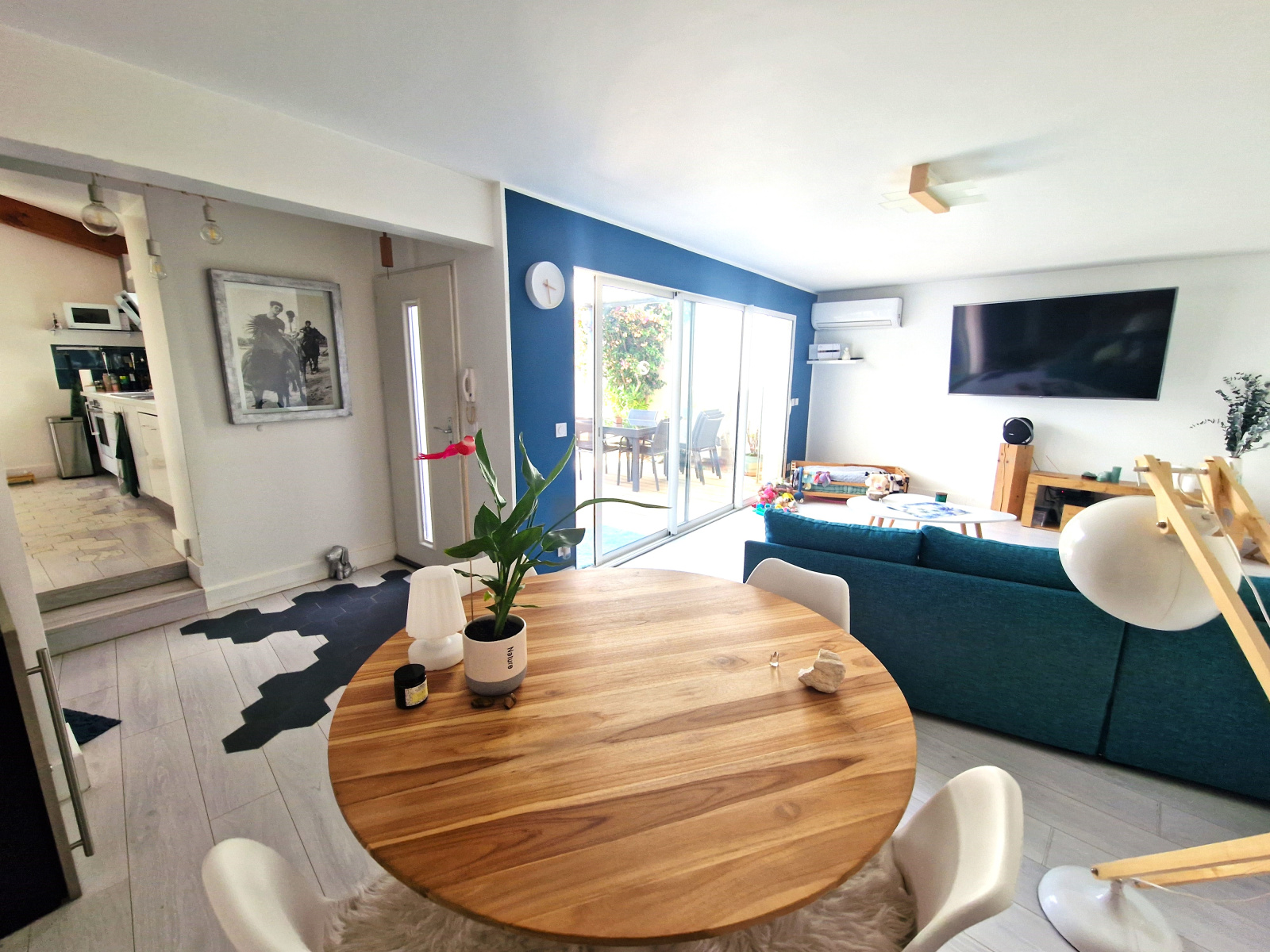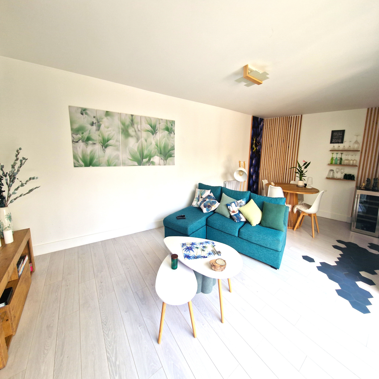 - Grand séjour + cuisine équipée semi-ouverte