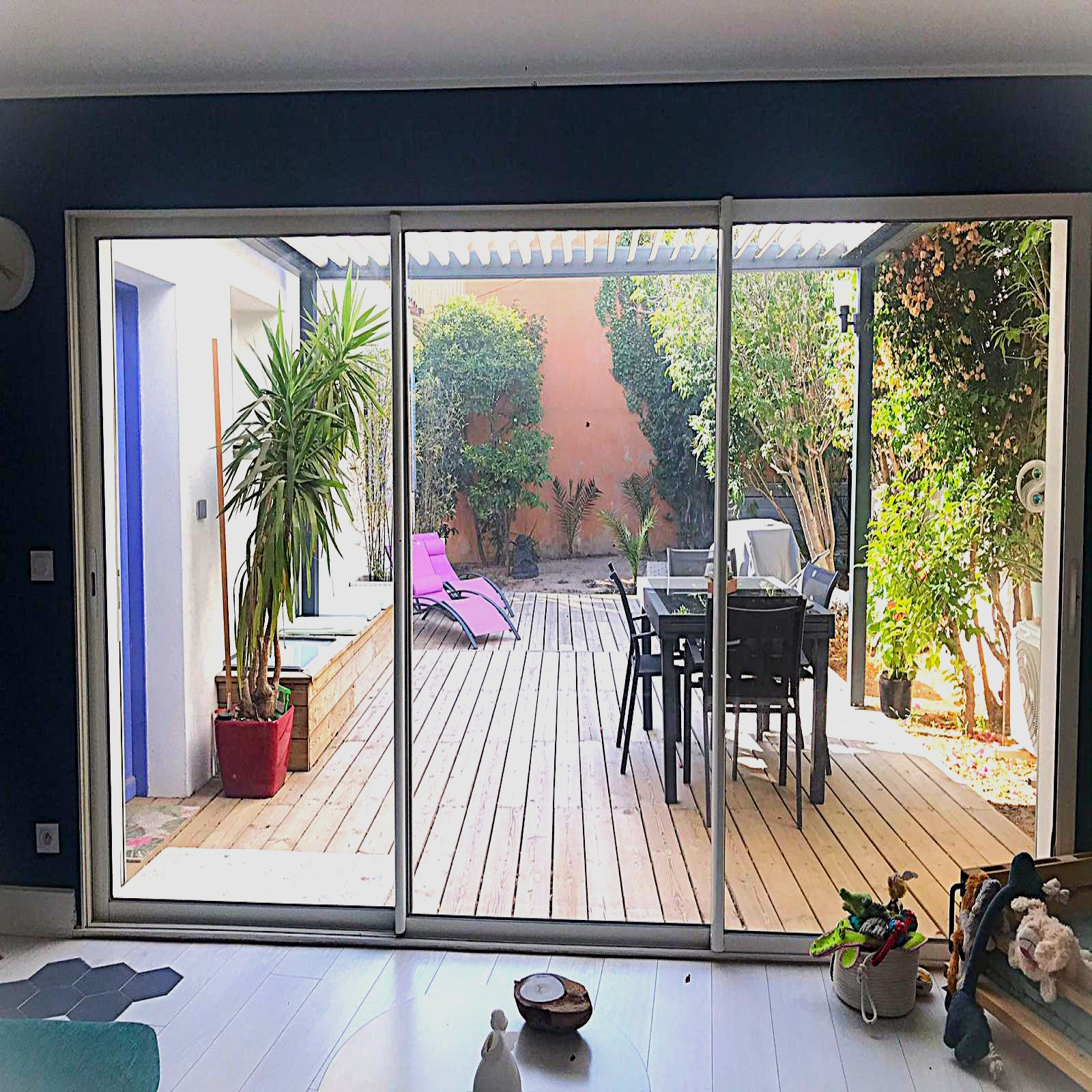 Extérieurs privatifs sans vis-à-vis : jardin arboré, grande terrasse bois, jacuzzi encastré, pergola bioclimatique (110 m²)