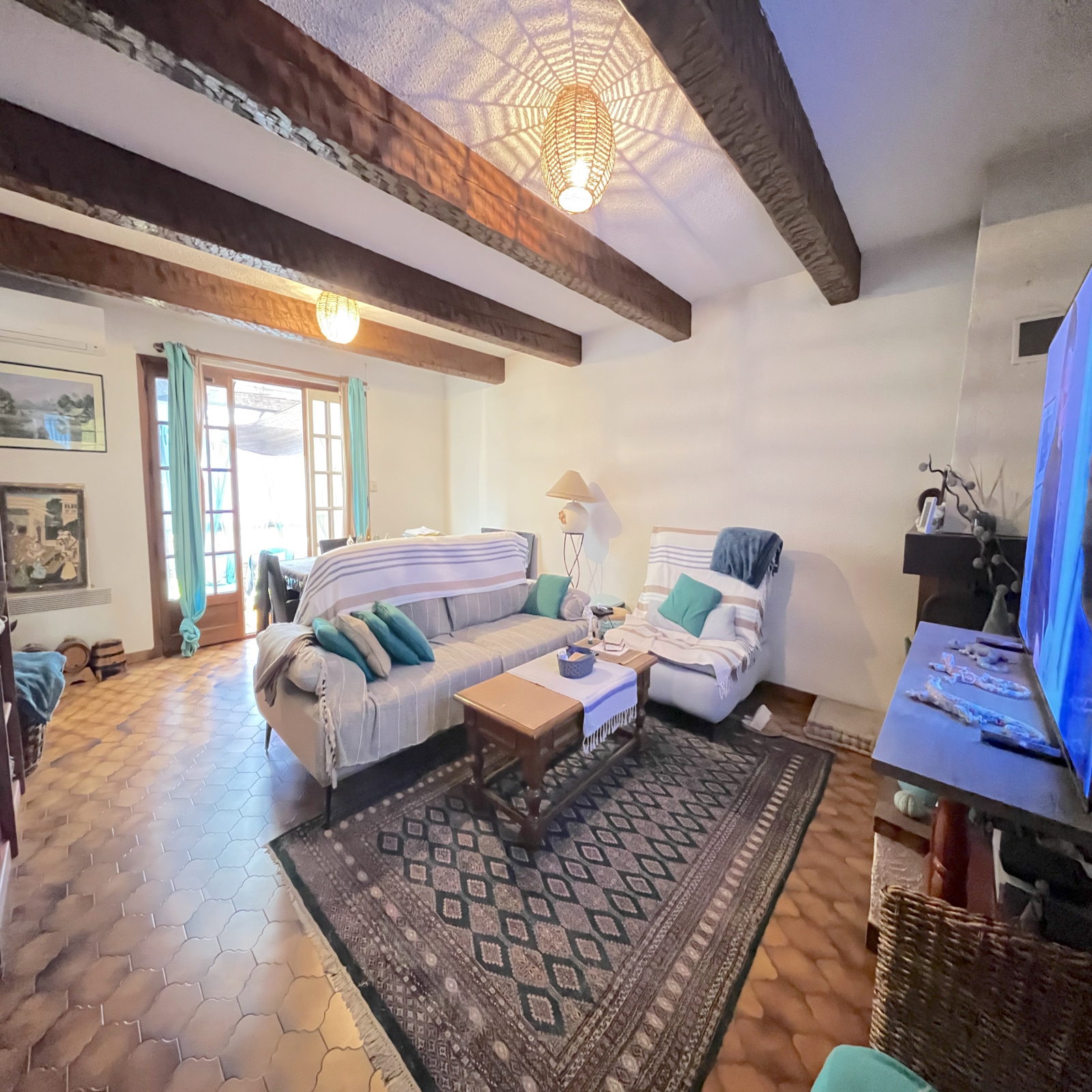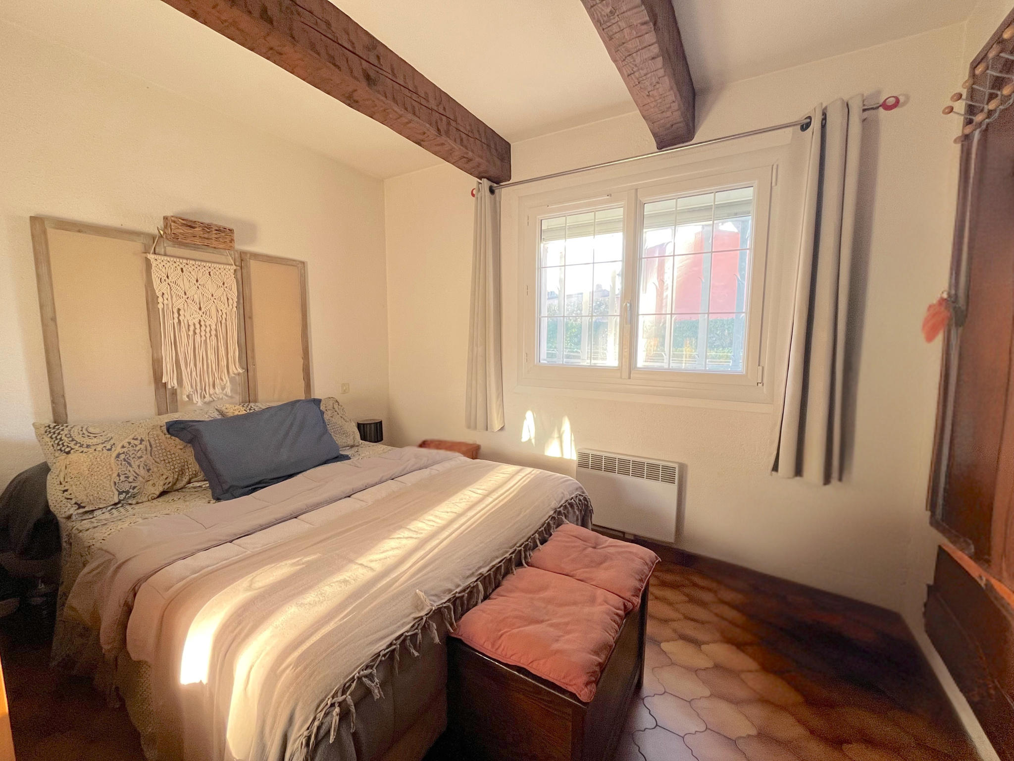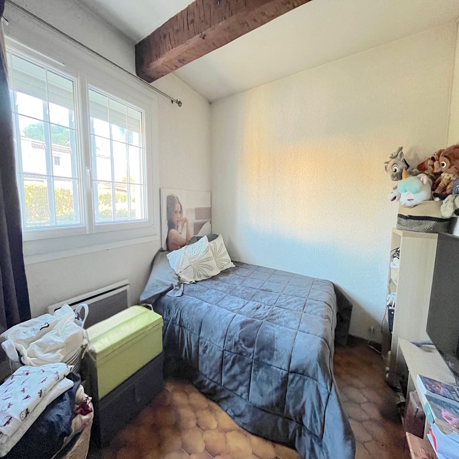 Elle se compose d’une entrée, d’un séjour lumineux et climatisé ouvert sur les extérieurs, d’une cuisine indépendante aménagée et équipée, de deux chambres avec placards, d’une salle d’eau et de WC séparés. Un garage attenant d’environ 14 m² offre la possibilité d’être aménagé en troisième chambre selon vos besoins.