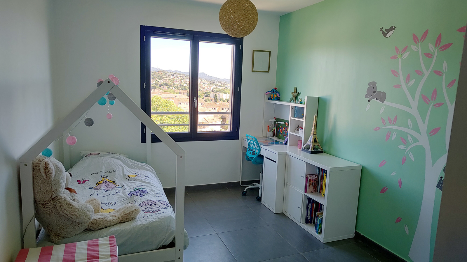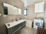 Elle se compose au rez-de-chaussée d’une entrée avec placards, d’une belle pièce de vie lumineuse avec cuisine aménagée et équipée, le tout ouvert sur une terrasse en travertin de 30 m², exposée plein Sud, offrant une agréable vue dégagée avec vue mer. Vous y trouverez également une suite parentale ainsi qu’un WC indépendant.