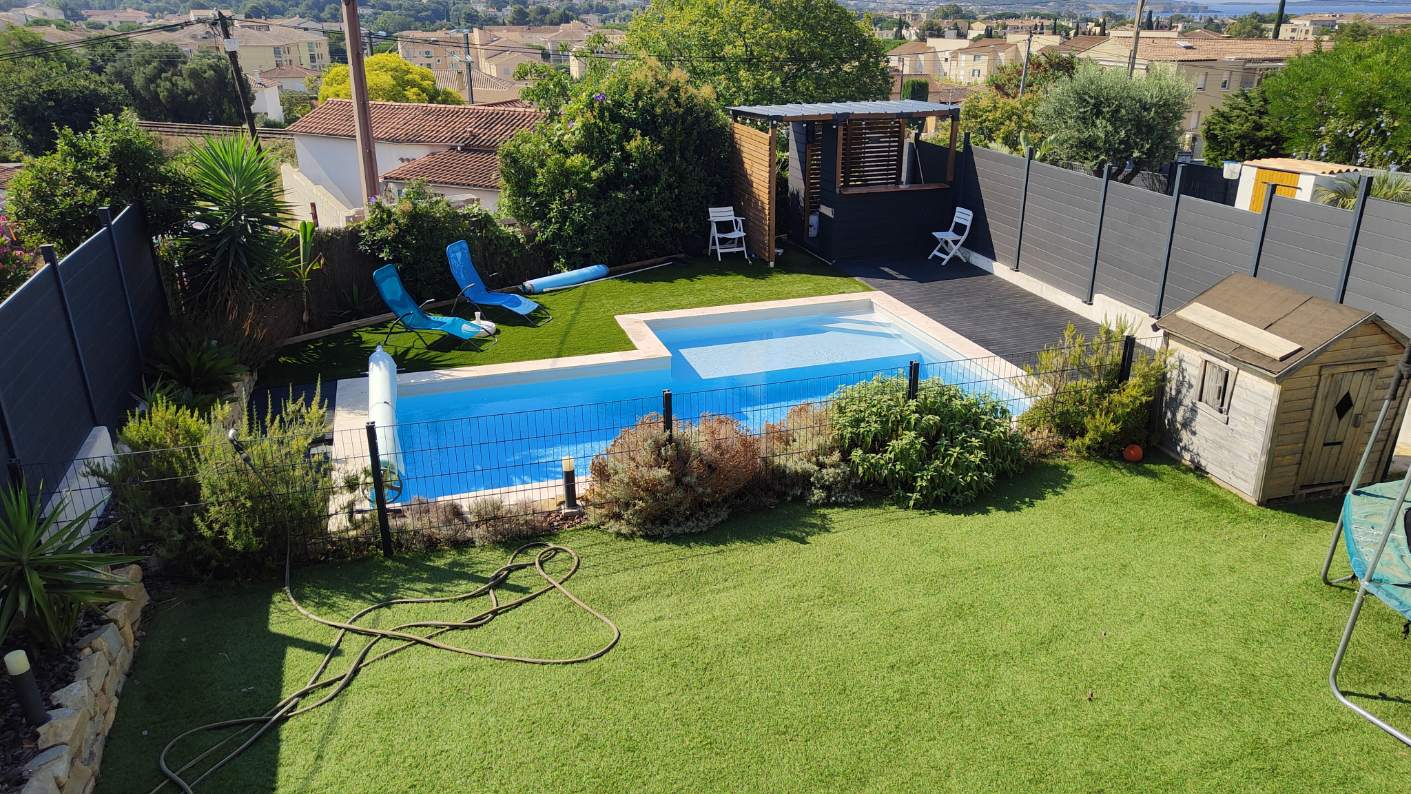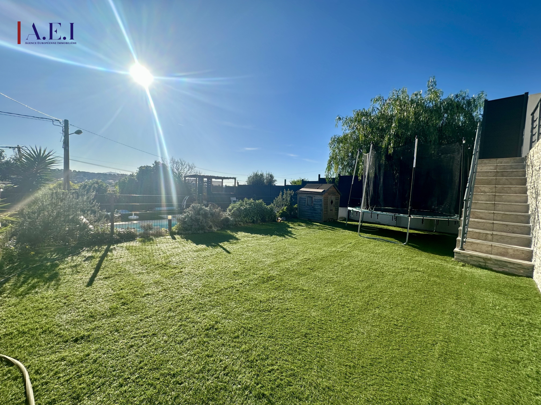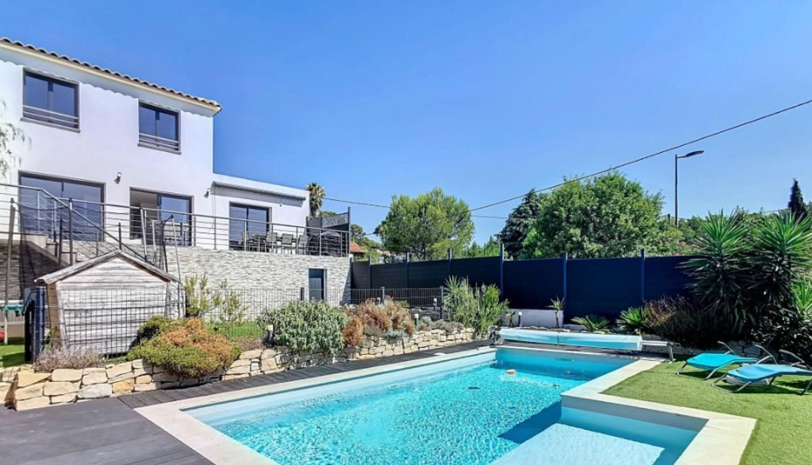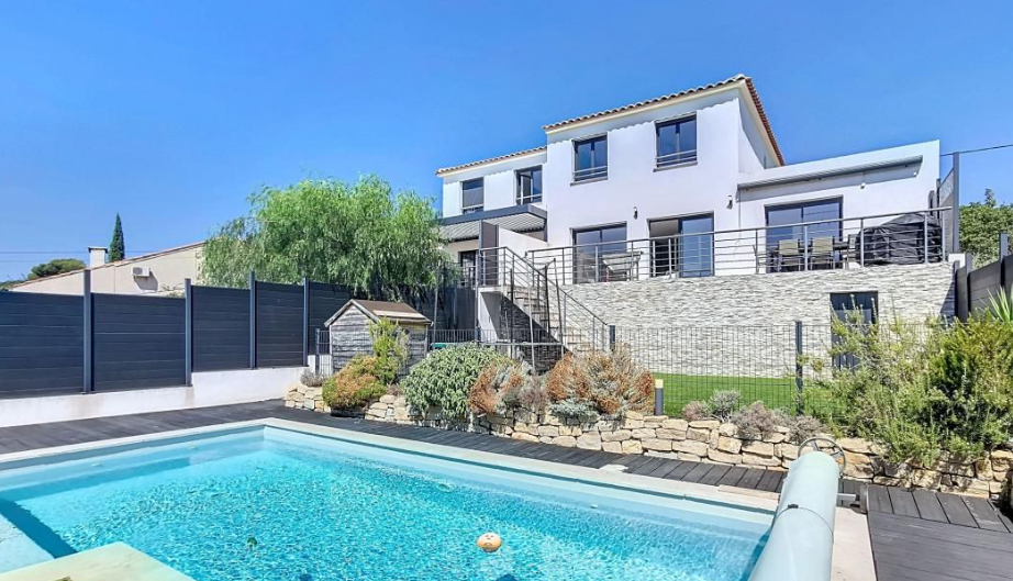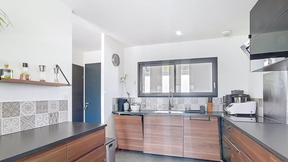 Implantée sur une parcelle d’environ 450 m², cette maison bénéficie d’un jardin paysager, d’une belle terrasse et d’une piscine privée pour profiter des beaux jours en toute tranquillité.