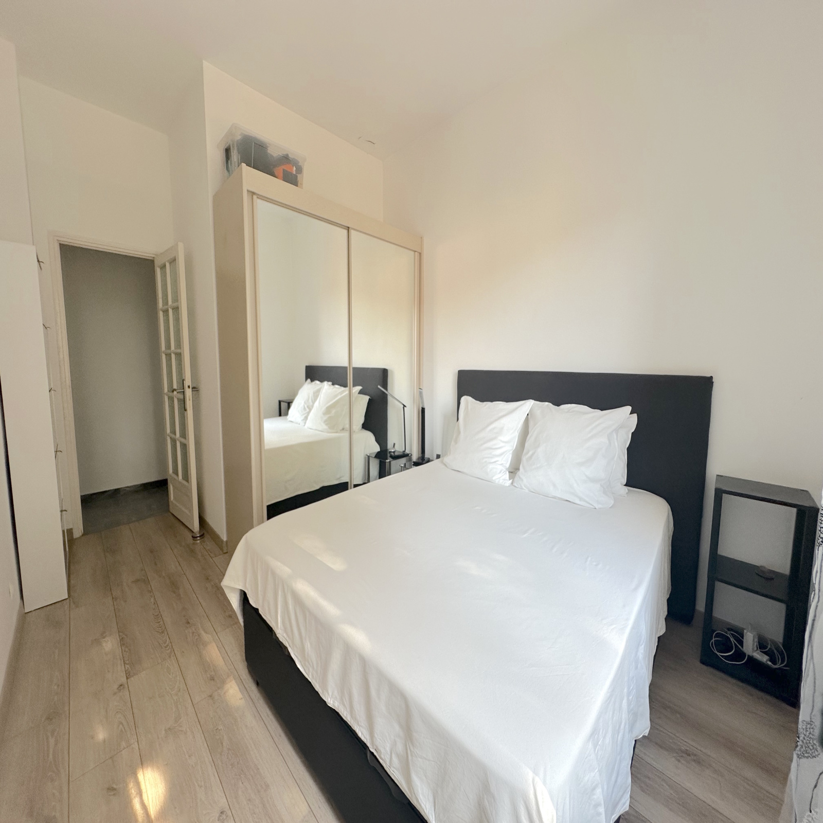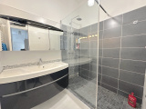 Côté nuit, l’appartement dispose de deux vastes chambres avec placards intégrés et parquet au sol, d’une salle d’eau moderne avec douche à l’italienne, ainsi que d’un WC indépendant.