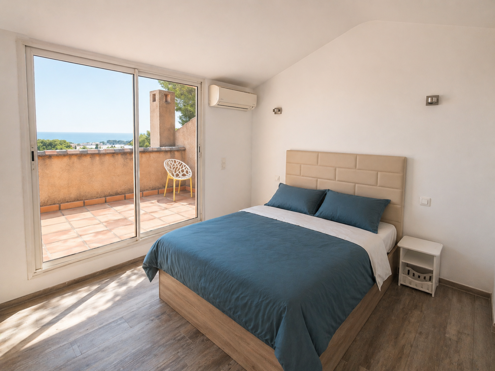 Il se compose de deux chambres en rez-de-chaussée avec salle de bains, au 1er étage un beau séjour lumineux avec cheminée et climatisation, d’une cuisine, d’une loggia exposé sud avec vue mer, ainsi que d’une suite parentale climatisée au dernier étage ouvrant sur un solarium avec superbe vue mer.