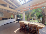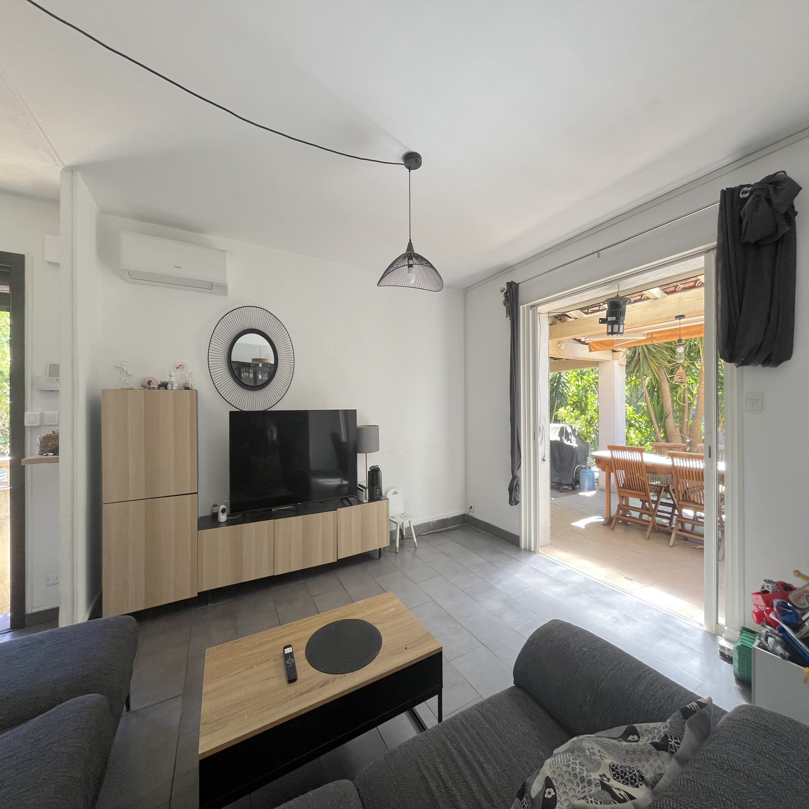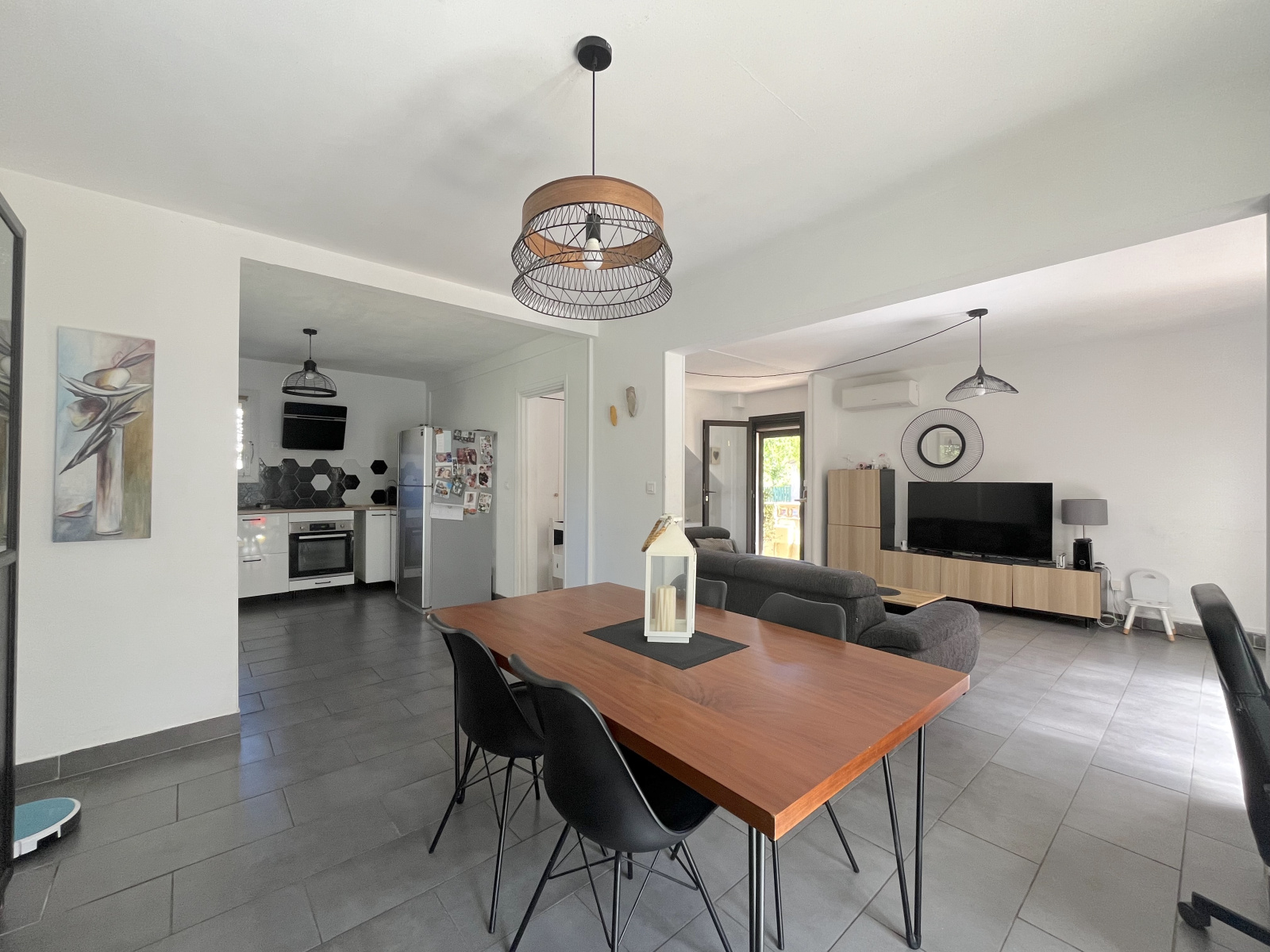 Le niveau principal de plain-pied dispose d'une entrée, un très bel espace de vie de 46m² composé d'un salon prolongé d'une salle à manger avec cuisine aménagée et équipée, le tout climatisé ouvert sur une véranda ainsi que sur la terrasse couverte puis le jardin. Des WC avec lave mains et un garage.