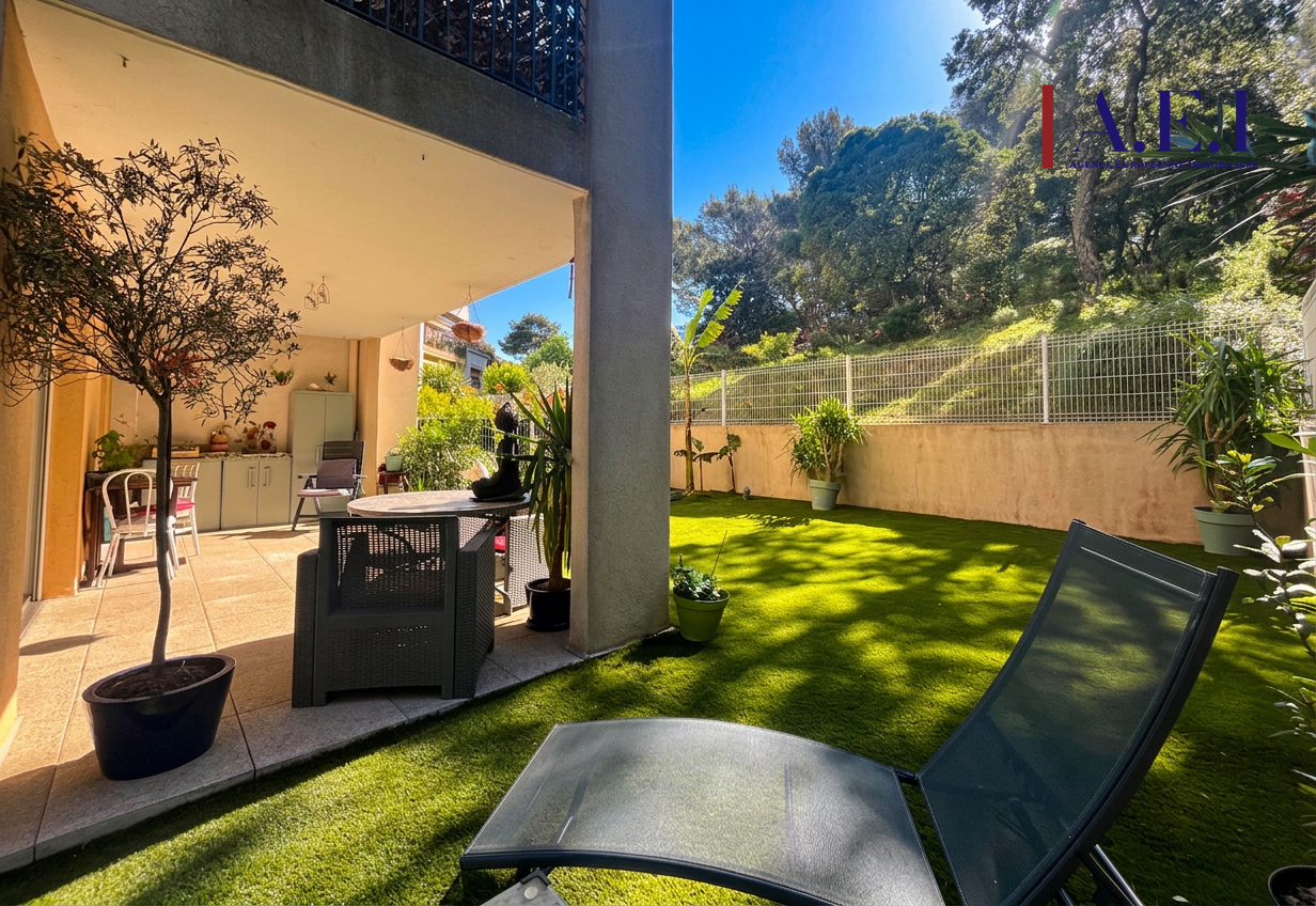 Idéalement situé dans une copropriété de standing de 2004 sécurisée et très bien entretenue, proche de tous commerces, toutes commodités, du fort Balaguier et de la Corniche de Tamaris accessible à pieds, venez découvrir ce bel appartement de type 3 de 70,30m² avec son jardin de 90m² en lisière de forêt, entièrement rénové au calme absolu.