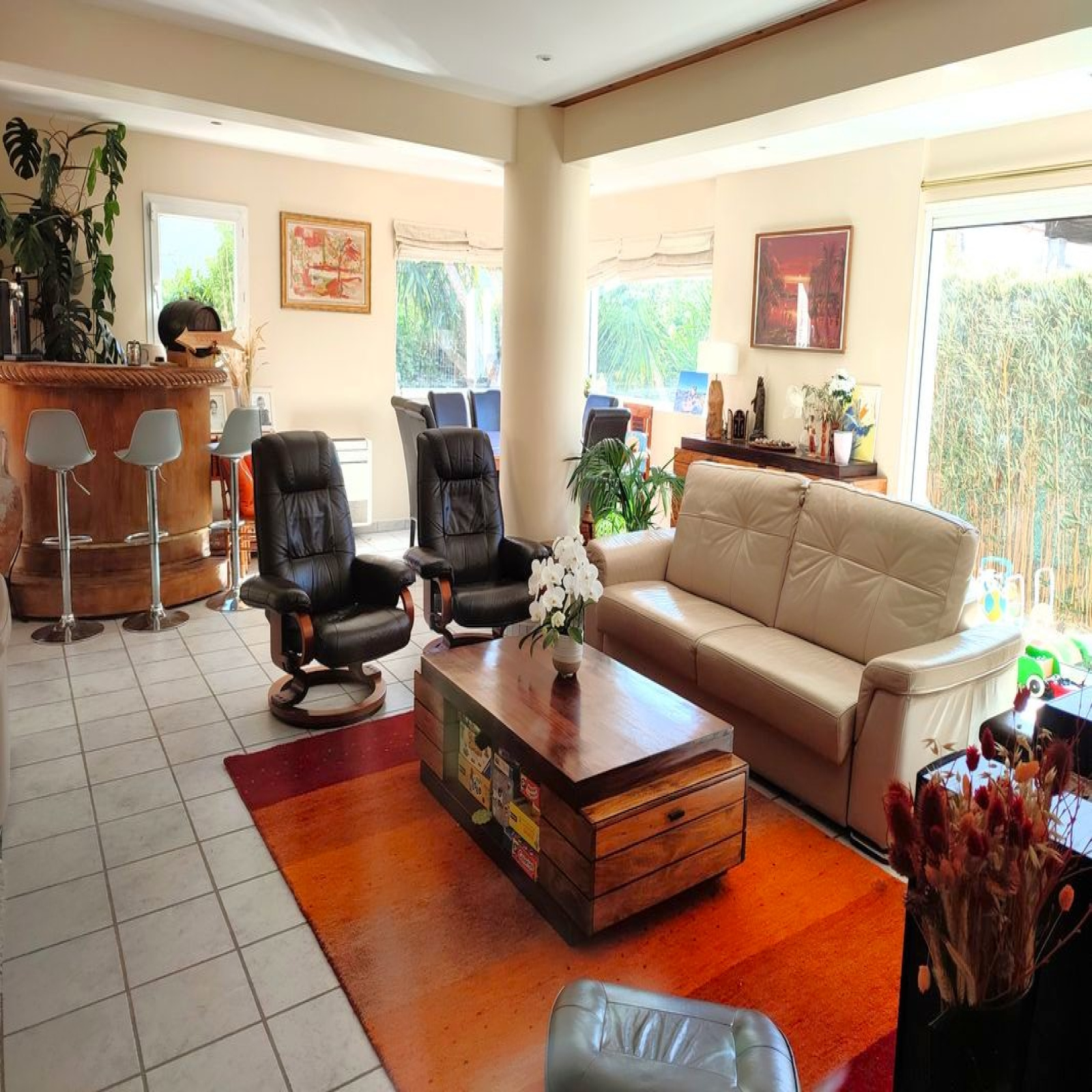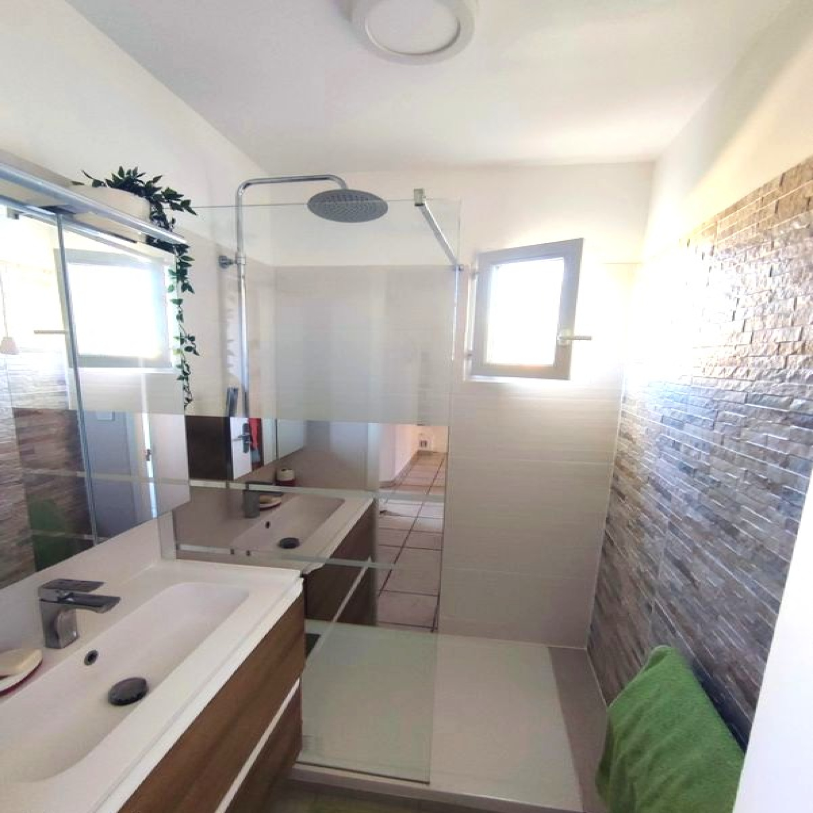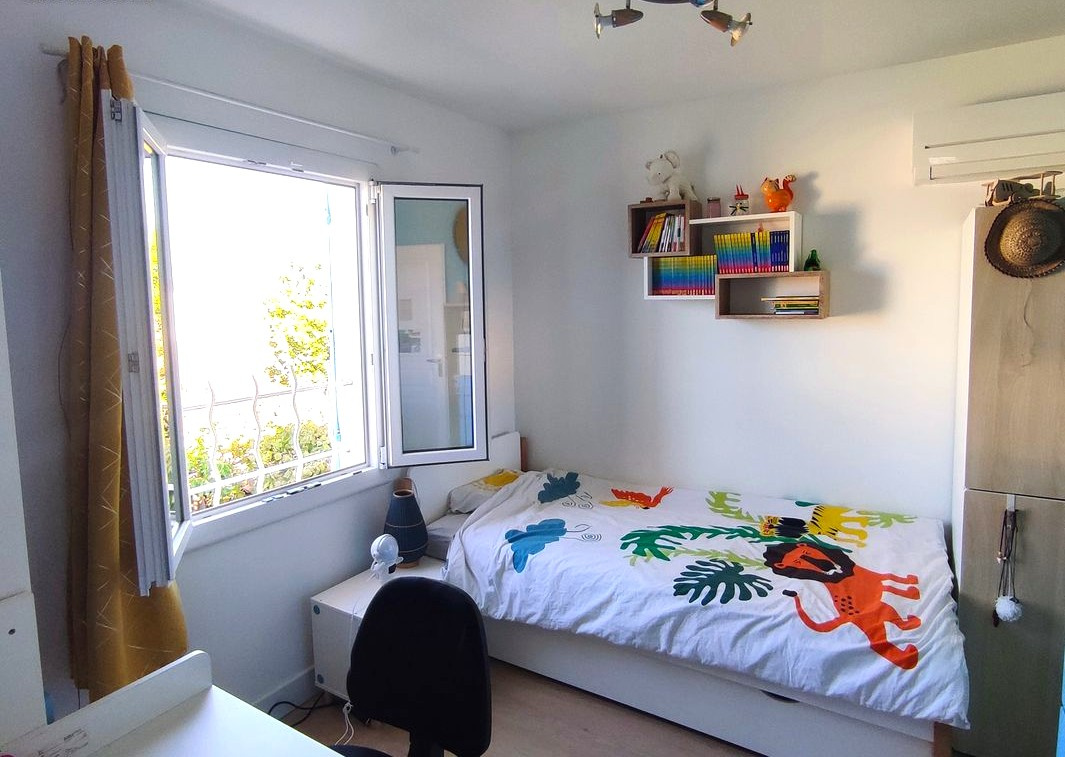 Confort moderne : clim réversible dans toutes les pièces, double vitrage, panneaux photovoltaïques installés en 2024, façade et toiture récentes.