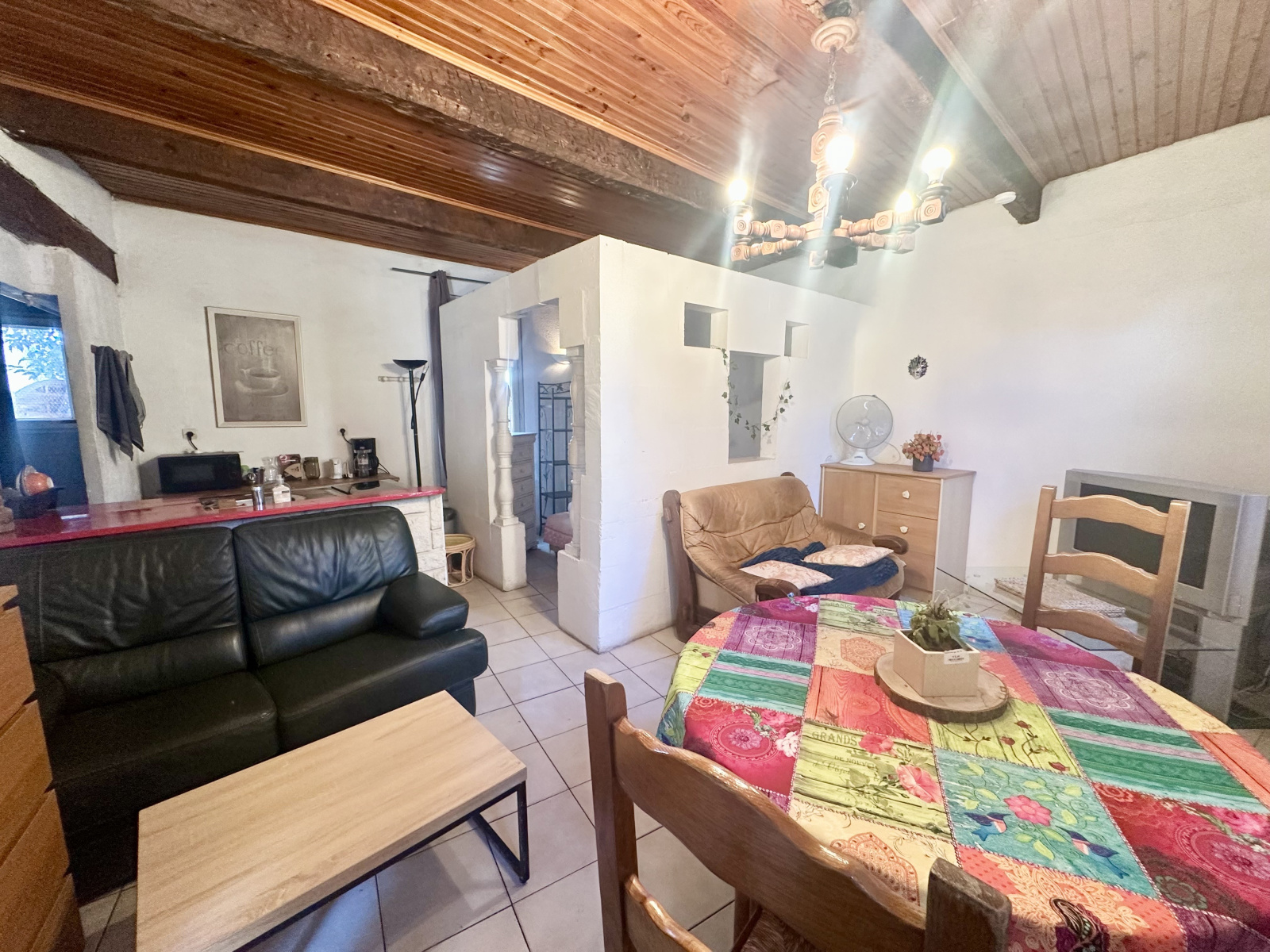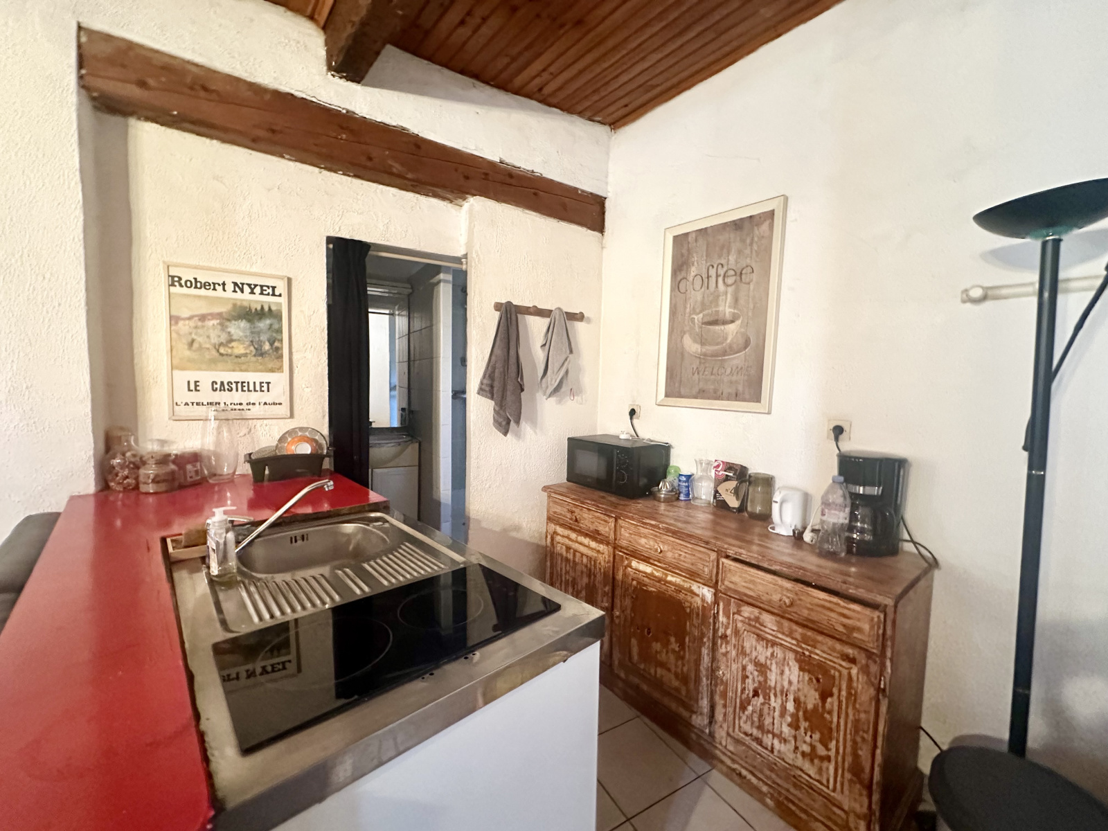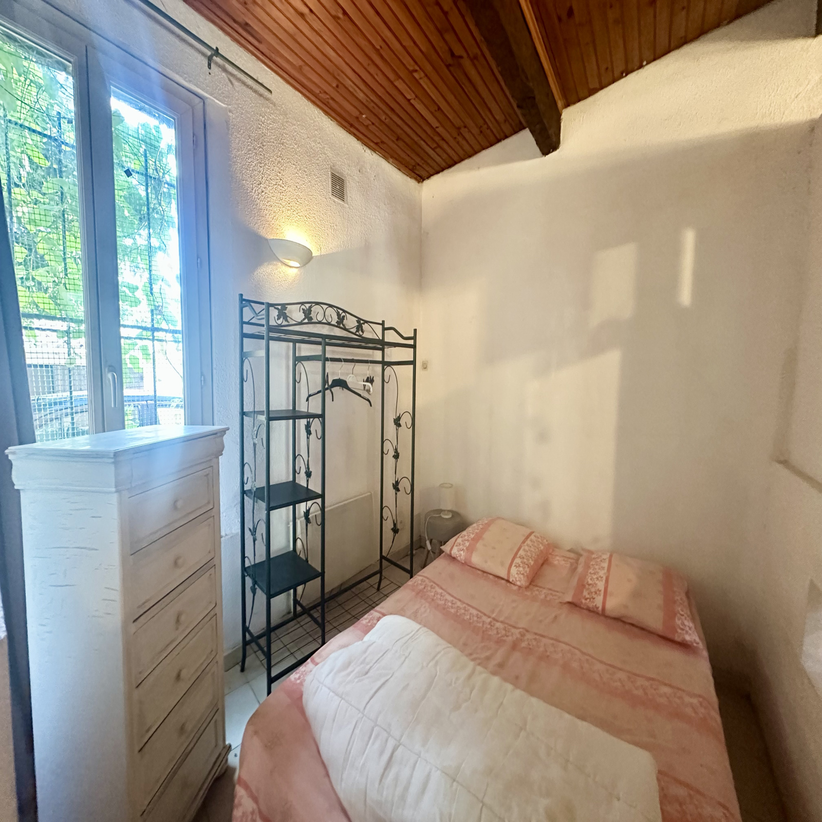 Au rez-de-chaussée se trouve un appartement T1/bis comprenant une pièce de vie avec cuisine équipée, une chambre ainsi qu’une salle d’eau avec WC.
