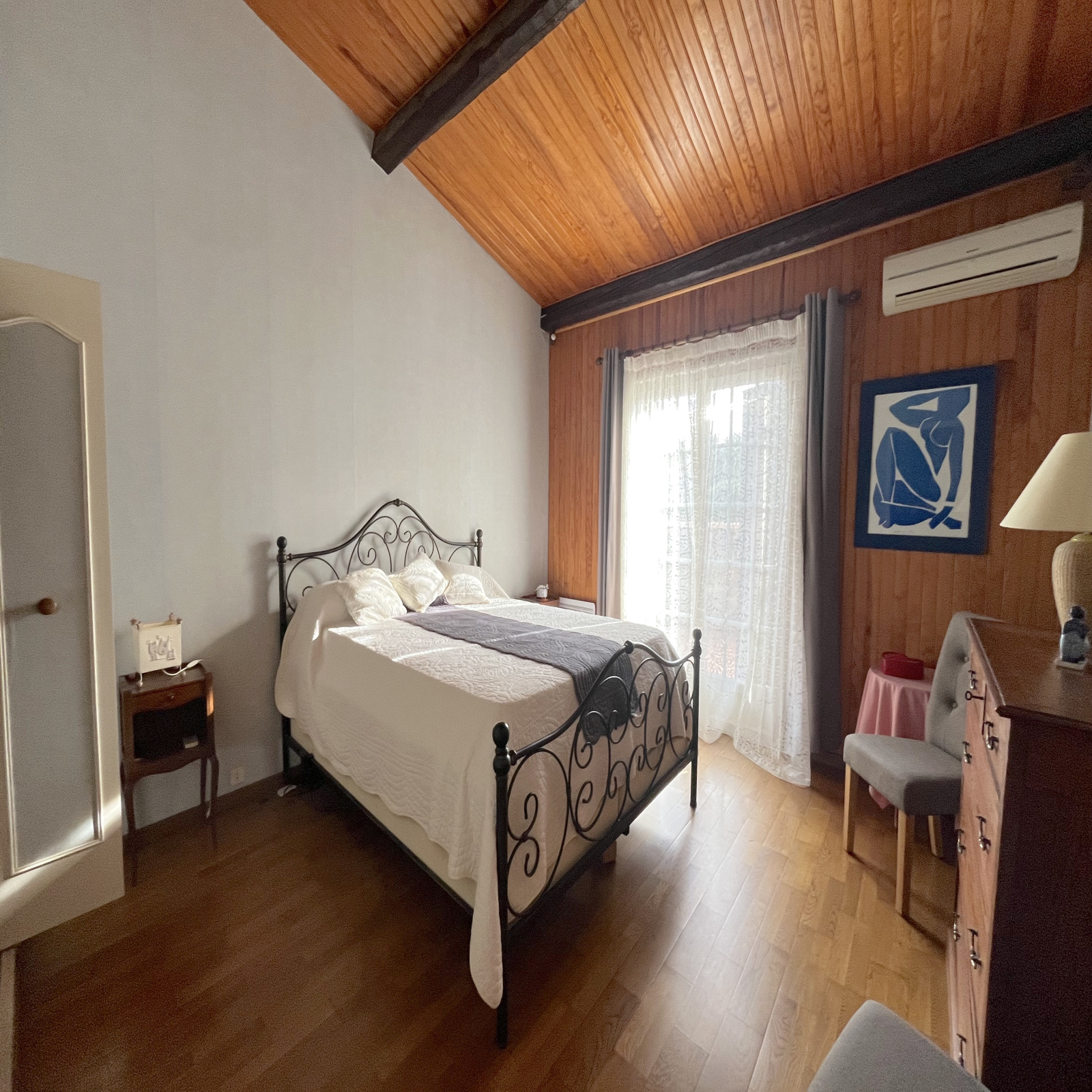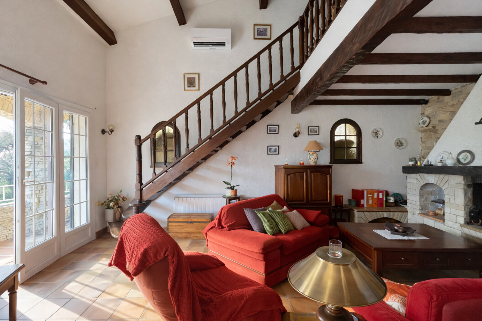 Construite sur un sous sol avec garage d'environ 80m2, au niveau principal, elle dispose d'une entrée, un séjour double climatisé au sud de près de 50m2 ouvert sur un balcon bénéficiant d'une belle vue dégagée, une cuisine indépendante, une suite parentale composée d'une chambre, une salle d'eau et des WC séparés.
