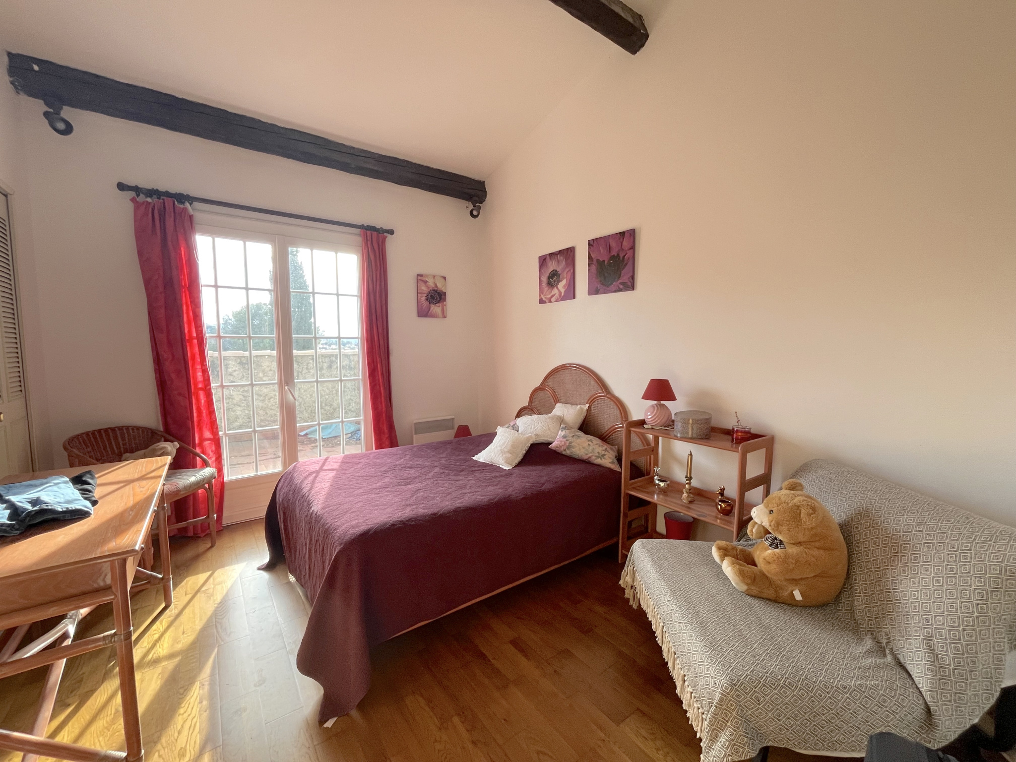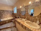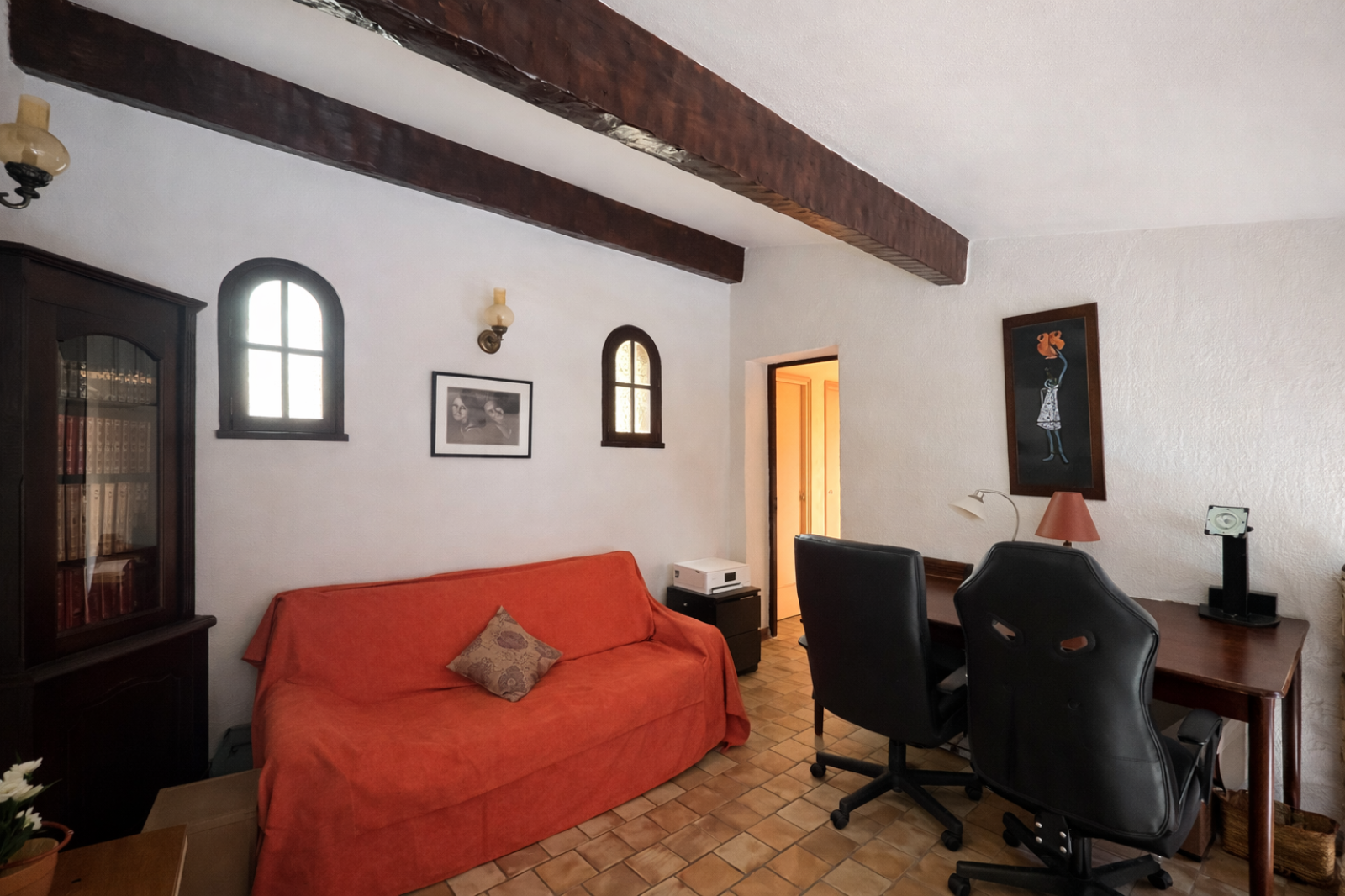 À l'étage, une mezzanine aménagée en bureau, deux chambres ouvertes sur une terrasse, ainsi qu'une salle de bains et des WC indépendants.