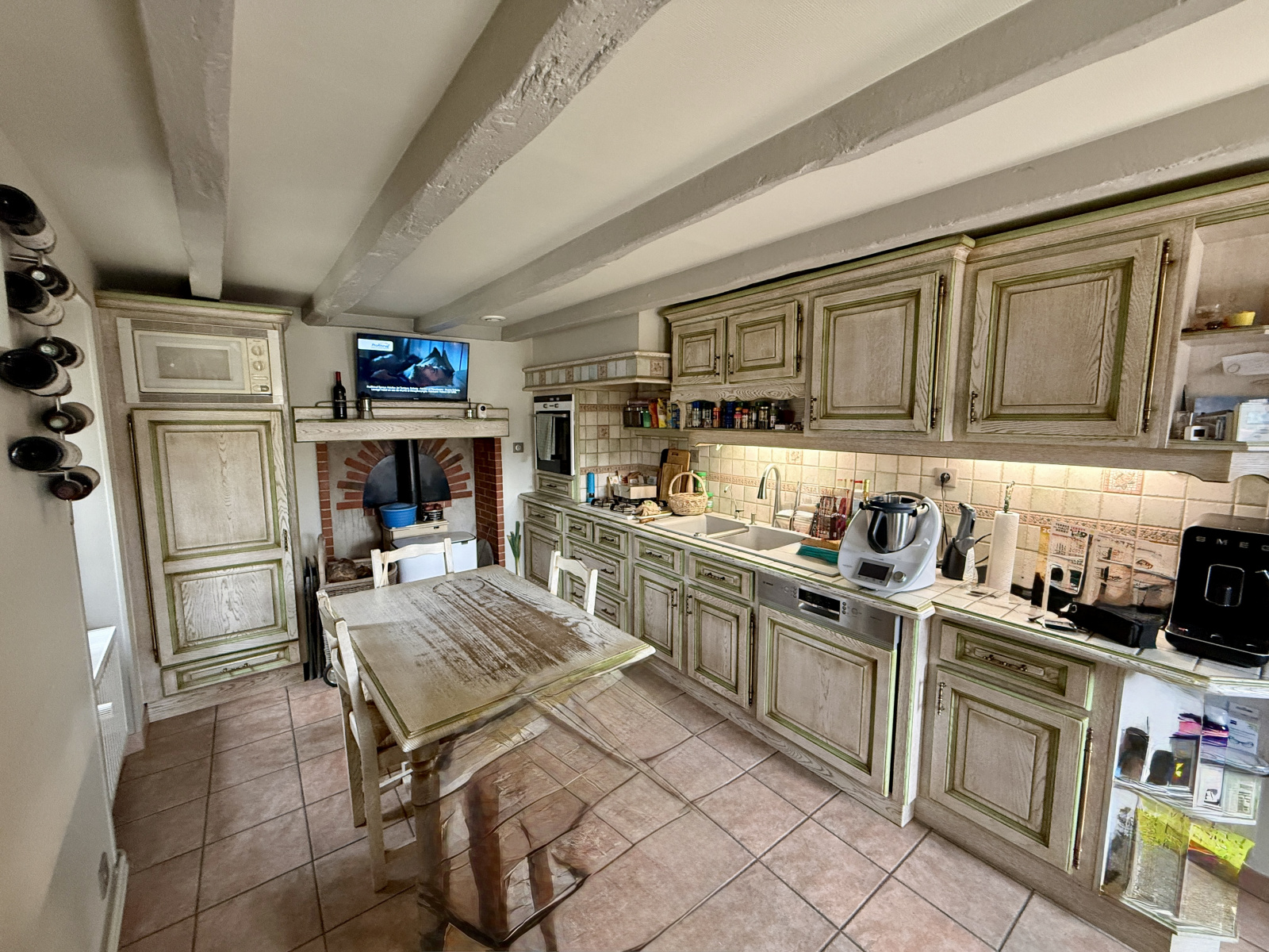 Dès l’entrée, vous serez séduits par un vaste salon +salle à manger de 50m², lumineux et chaleureux grâce à sa cheminée ouverte. La cuisine équipée, fonctionnelle + poêle à bois et un four à pizza, s’accompagne d’un cellier/buanderie.