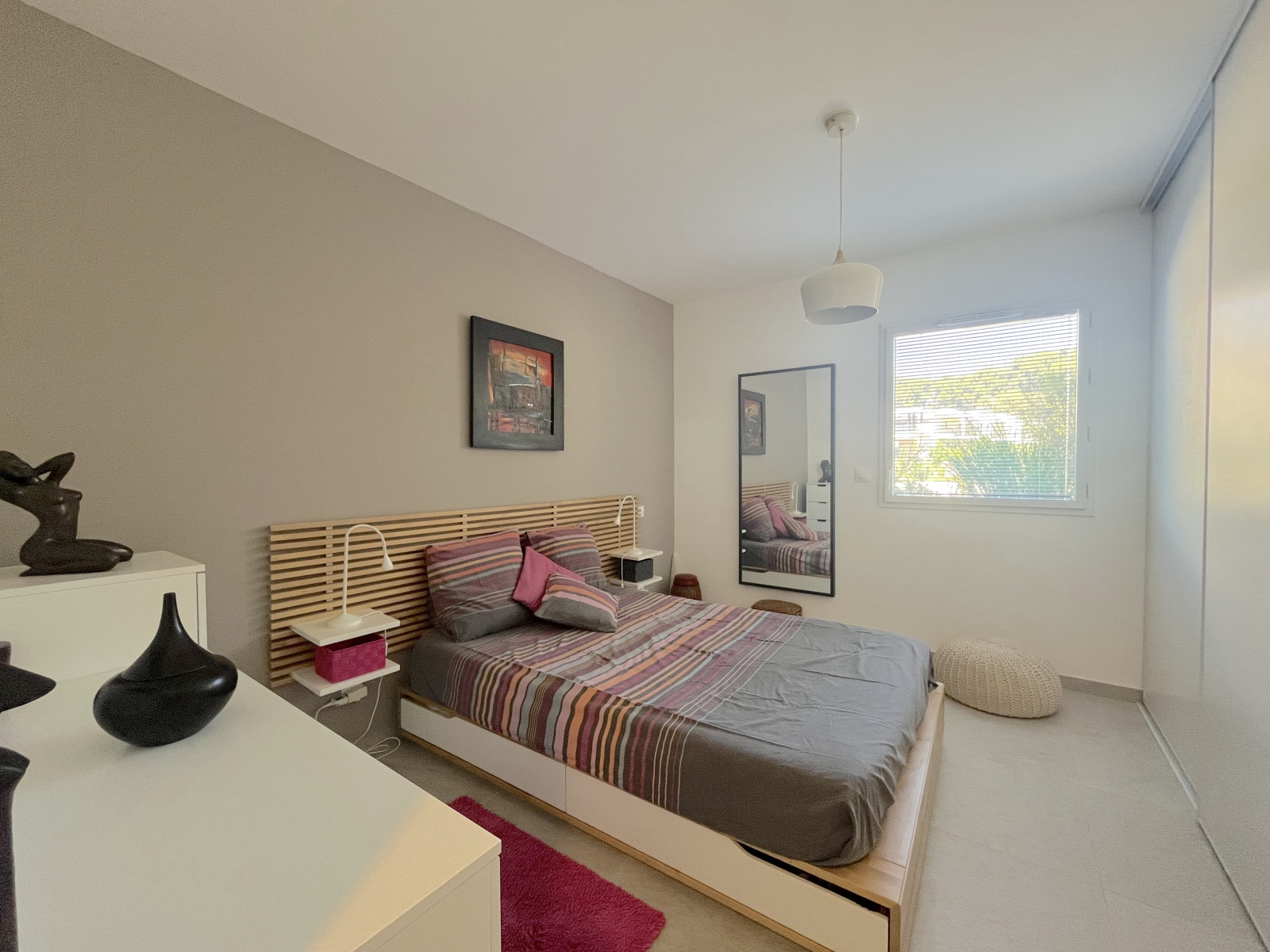 Vous serez séduit dès l’entrée par ses volumes généreux et sa pièce de vie lumineuse de près de 33 m², avec cuisine américaine entièrement équipée, ouvrant sur une spacieuse terrasse, idéales pour profiter du doux climat méditerranéen.