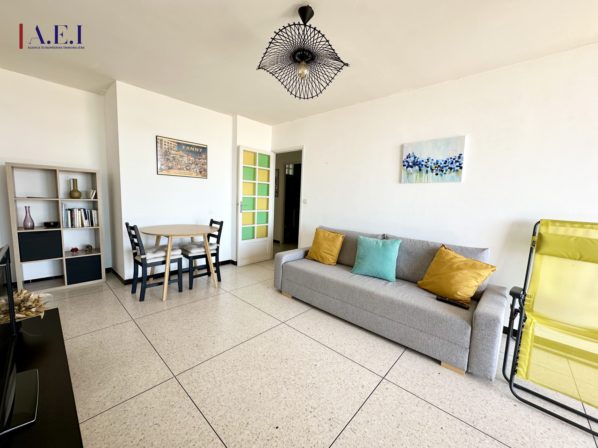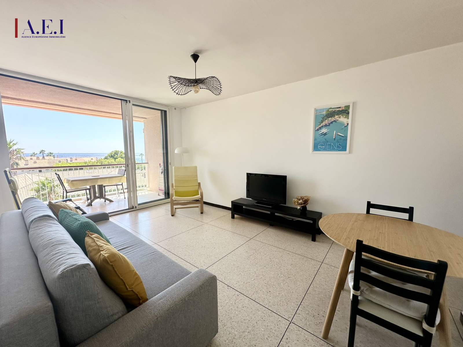 Situé au 3ᵉ et dernier étage, il se compose d'une entrée, d'une pièce de vie lumineuse ouvrant sur la terrasse avec vue mer, d'une cuisine traversante bénéficiant également d'une vue mer, d'une loggia faisant office d'arrière-cuisine et de buanderie, d'une spacieuse chambre avec placards, ainsi que d'une salle de bains avec WC. L'appartement est lumineux et offre de beaux volumes.